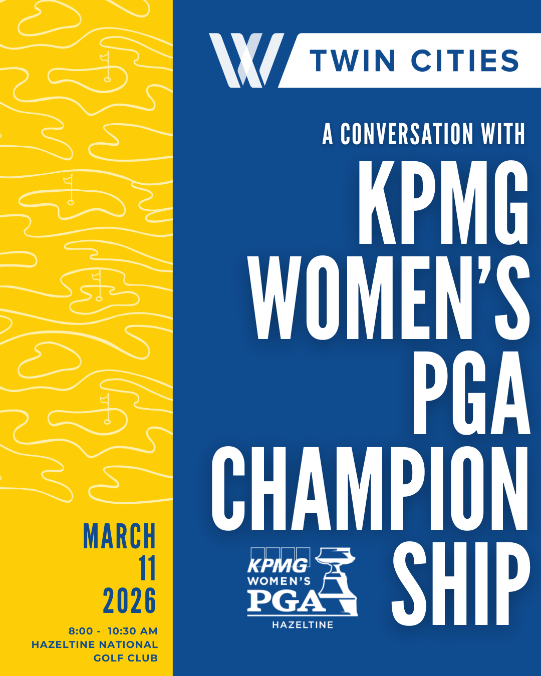 Join WISE Twin Cities and PGA of America on Wednesday, March 11th to learn more about the upcoming 2026 KPMG Women’s PGA Championship being held in Minnesota this upcoming summer. The 2026 KPMG Women’s PGA Championship will be returning to Hazeltine National Golf Club this summer for the first time since 2019 and welcoming in over 150 professional women golfers.