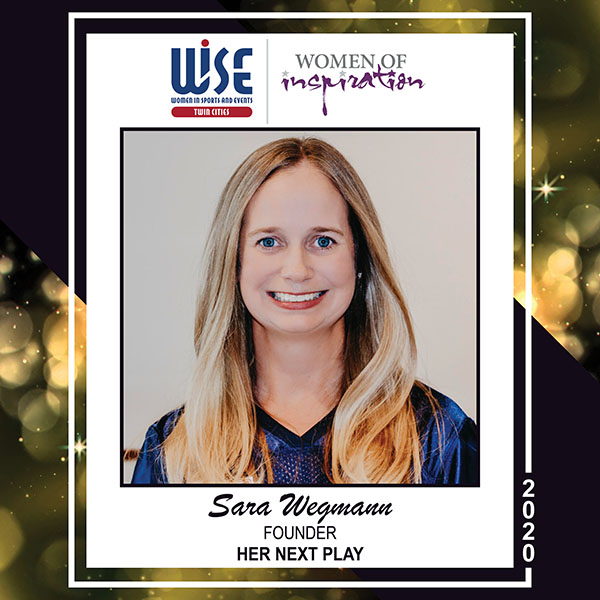 WISE Twin Cities is celebrating Sara Wegmann, Founder and President of Her Next Play, as one of this year’s 2020 Women of Inspiration honorees.